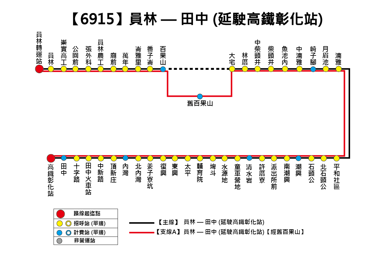 ▲《6915A》 員林 - 田中 - 高鐵彰化站(經舊百果山)