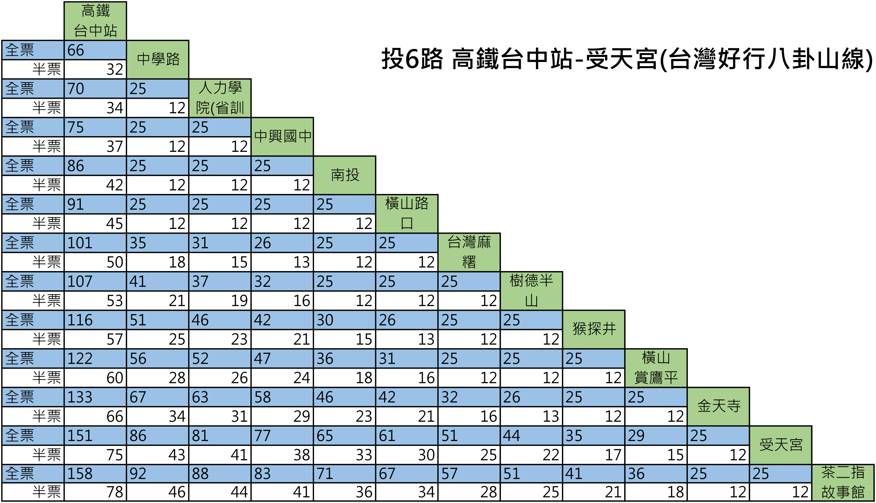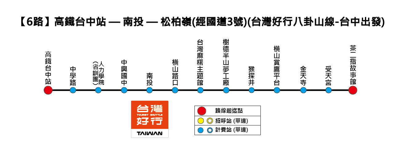 ▲《投6路》高鐵臺中站-南投-松柏嶺(經國道3號)(台灣好行八卦山線—台中出發)